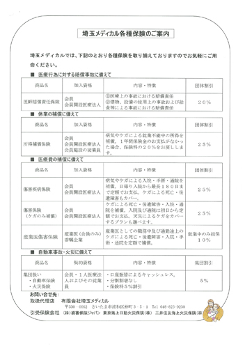 有限会社埼玉メディカルは、埼玉県医師会会員の先生方向けに各種損害保険・