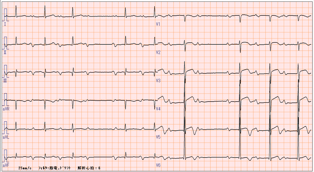 健康診断で心電図異常を指摘され循環器内科を受診した。